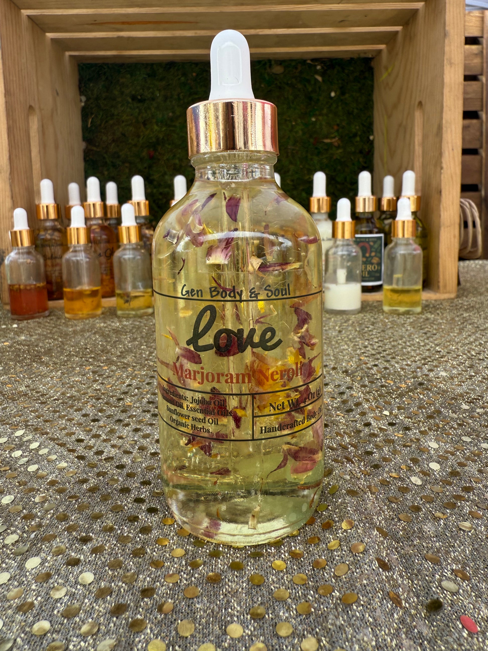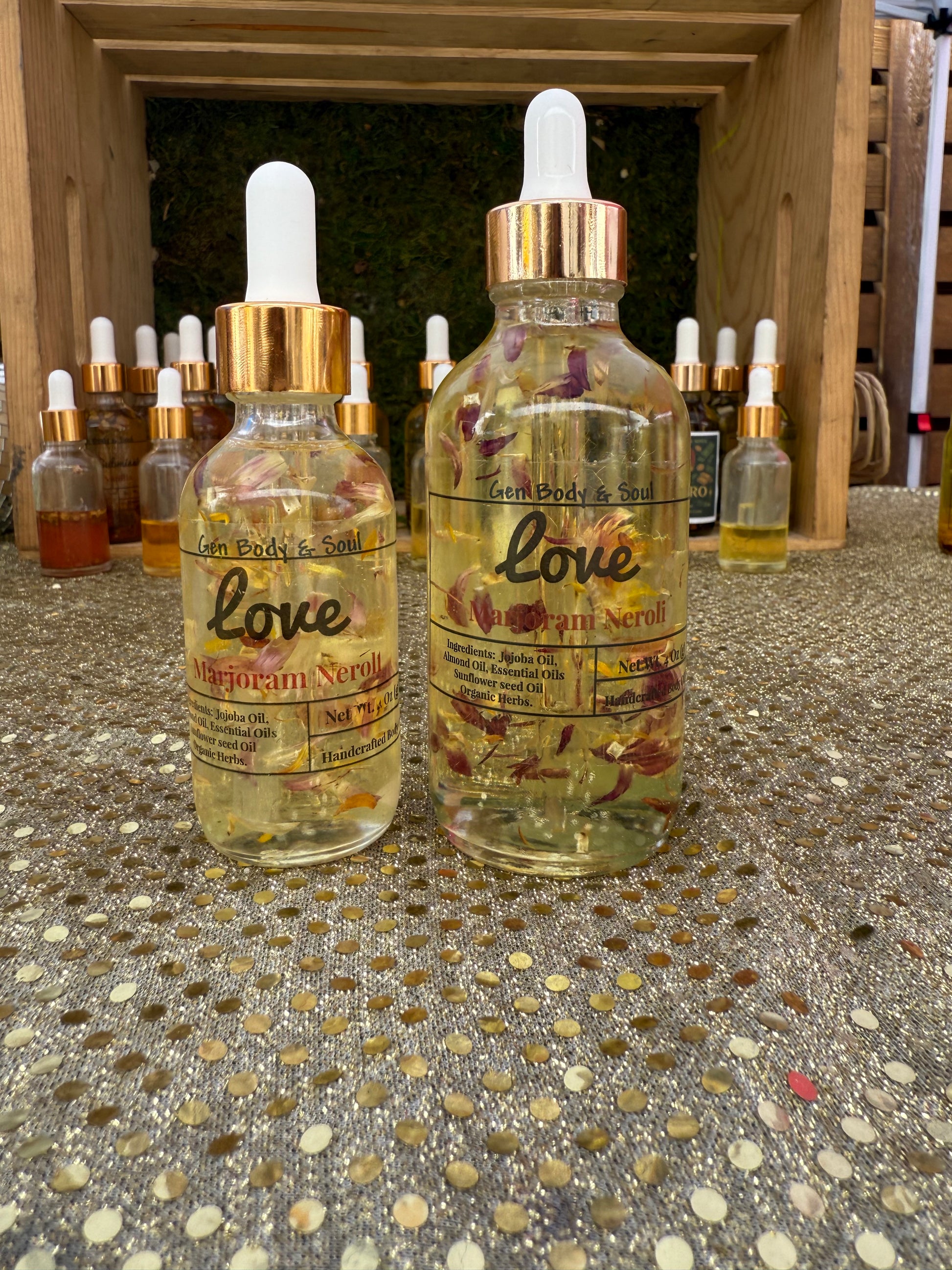 Open your heart and invite more love into your life with our Love Blend Oil. Inspired by the Heart Chakra, this handcrafted oil nourishes your skin while uplifting your spirit. Designed for ALL skin types, it helps you break free from negativity, cultivate self-love, and foster meaningful connections. Infused with love-attracting herbs, essential oils, and crystals, this transformative blend brings harmony, joy, and feminine energy into your daily routine.