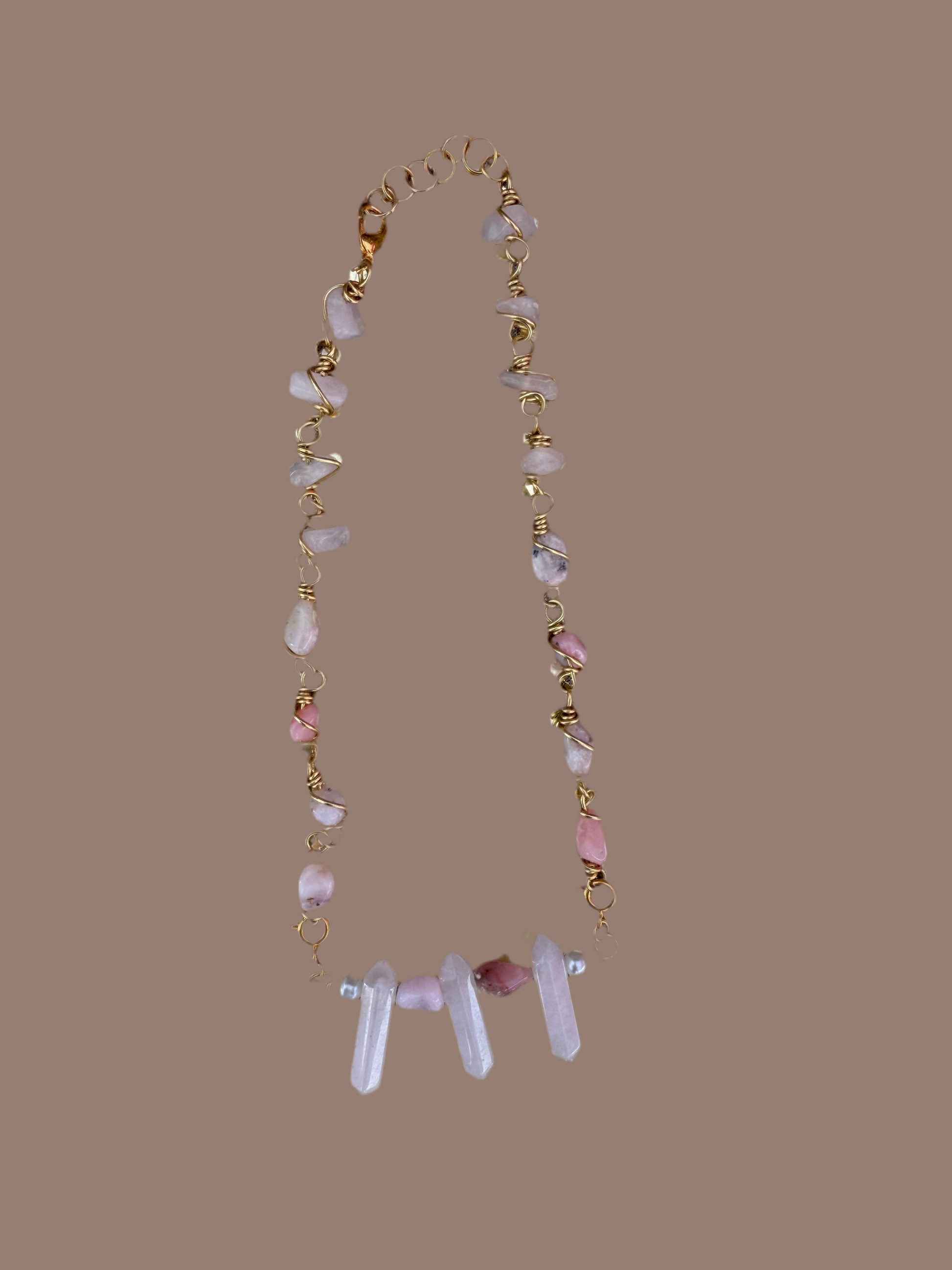 This handcrafted choker features a soft, glowing rose quartz stone wrapped in warm, radiant copper, sitting close to the heart and throat chakras. Rose quartz is the stone of unconditional love, known for healing emotional wounds, deepening self-love, and attracting gentle, nourishing energy.