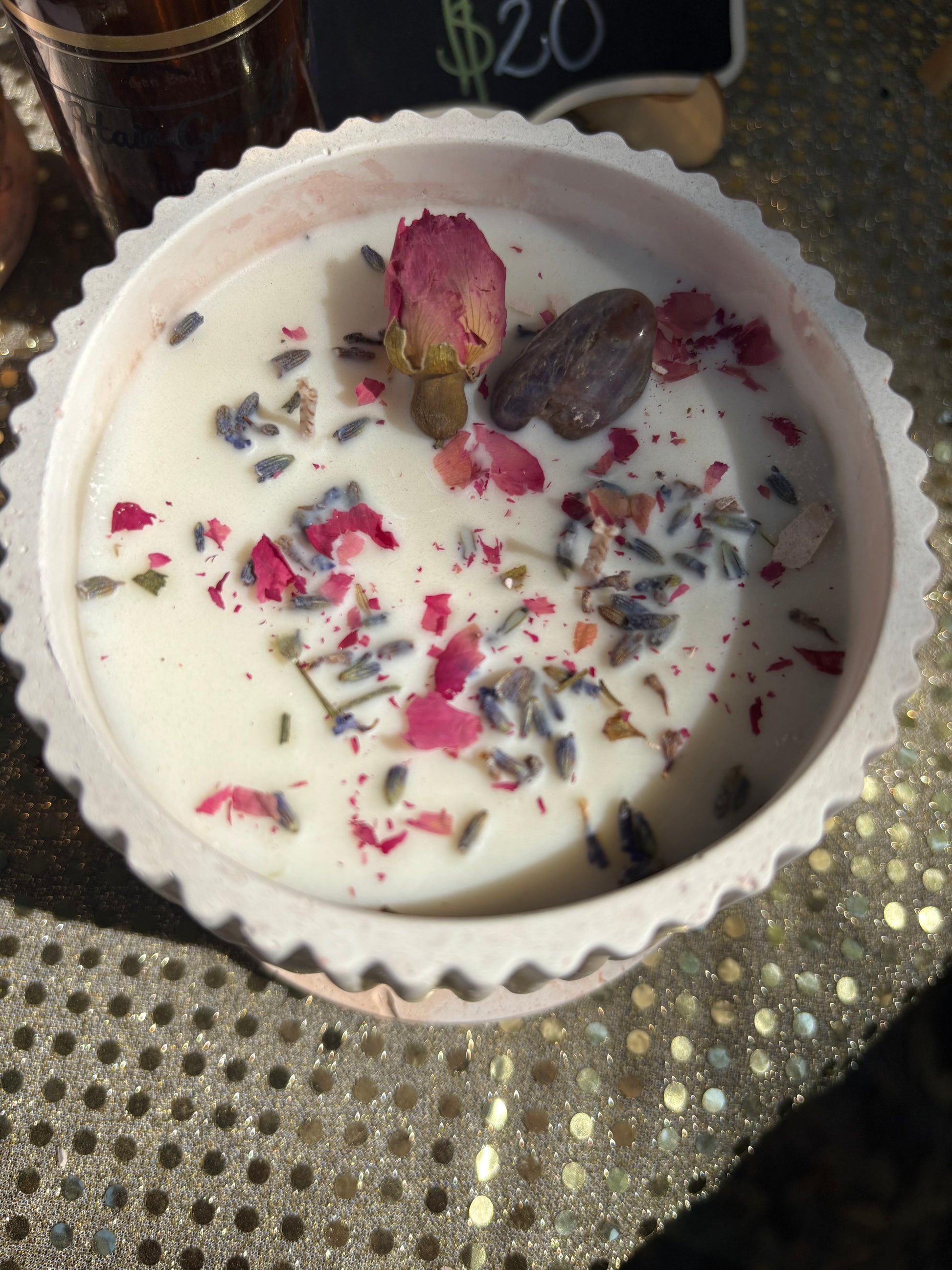 3. Place the paper beneath the candle and hold the included crystals, visualizing a protective barrier forming around you.