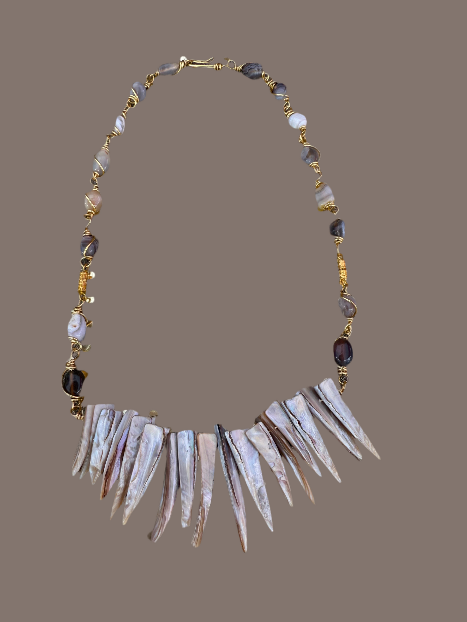 🐚🔥 Abalone Spike & Agate Copper Necklace – Protection, Intuition & Earth Magic