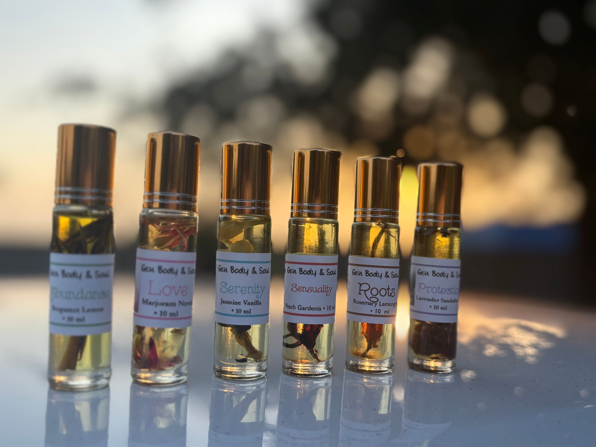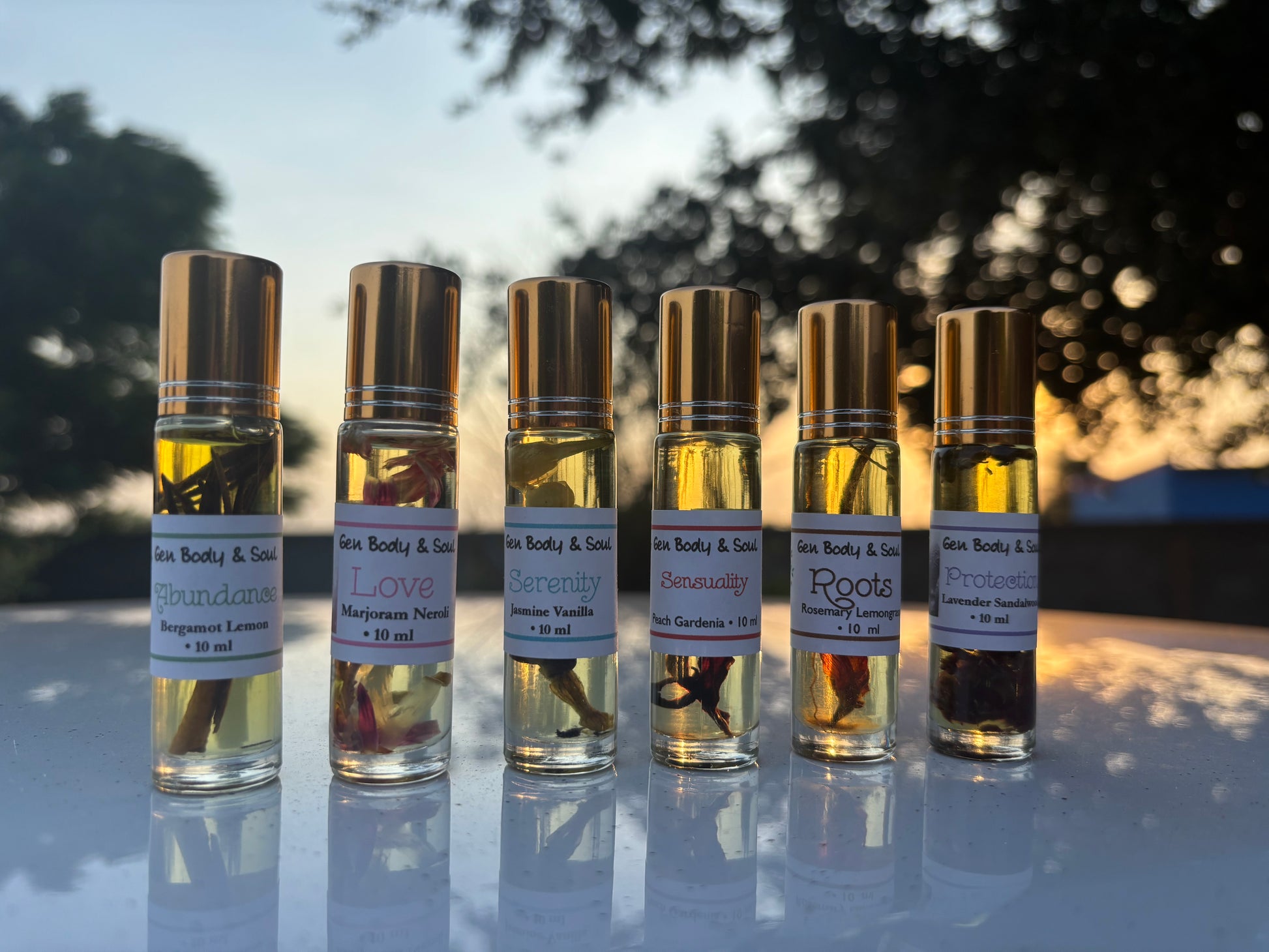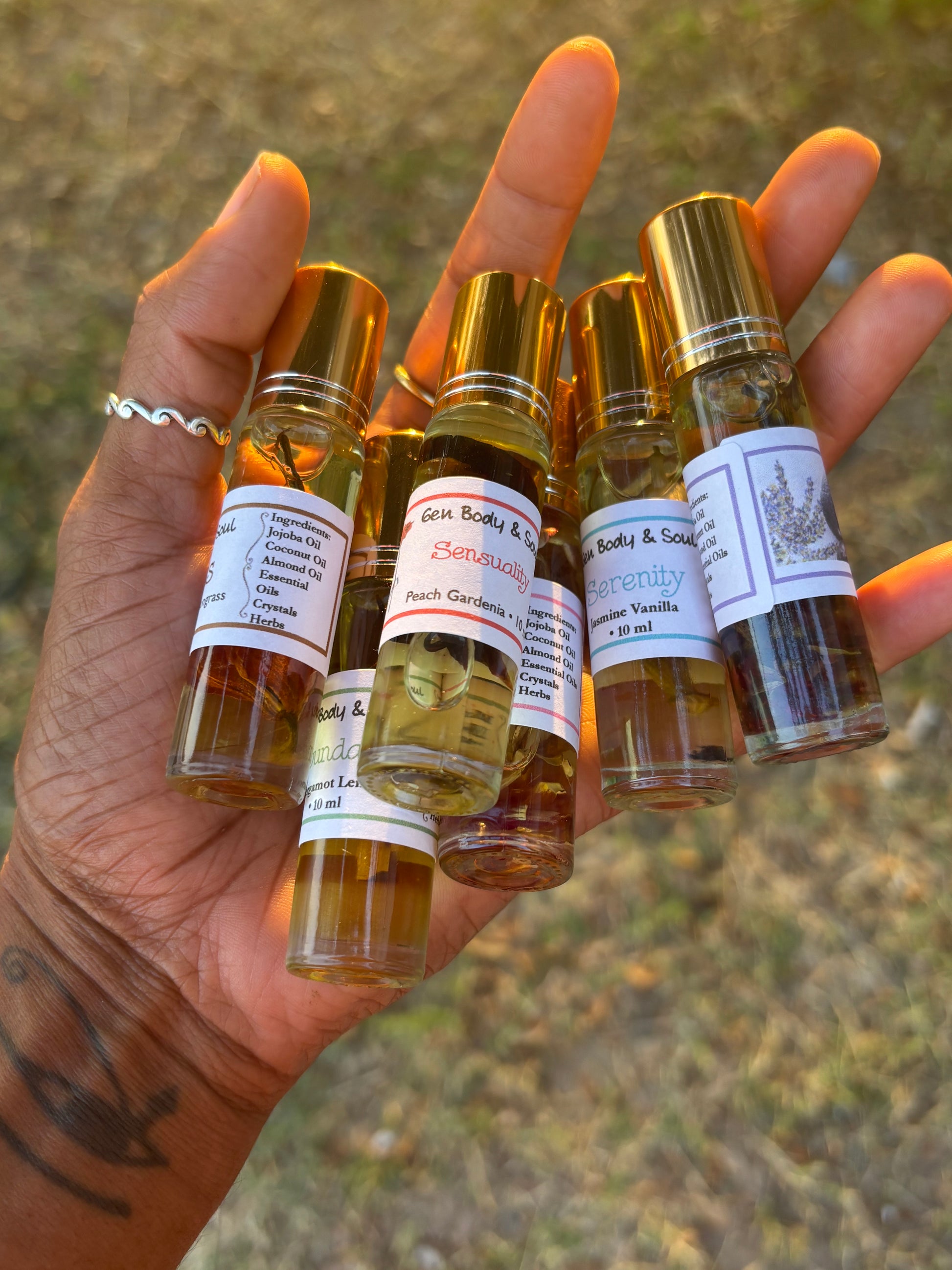 Elevate your daily rituals with The Seven Realms Roll-Ons, a luxurious collection of all-natural blends crafted with essential oils and infused with the healing power of crystals. Each roll-on is thoughtfully designed to align with energy and intentions, offering a unique experience of balance, clarity, and calm. Whether you seek to uplift your spirit, soothe your mind, or ground your energy, this set has a blend for every moment. Find out which of our oils resonates with you most ! . Perfect for self-care or gifting, this set bring nature’s essence and crystal energy into the palm of your hand.