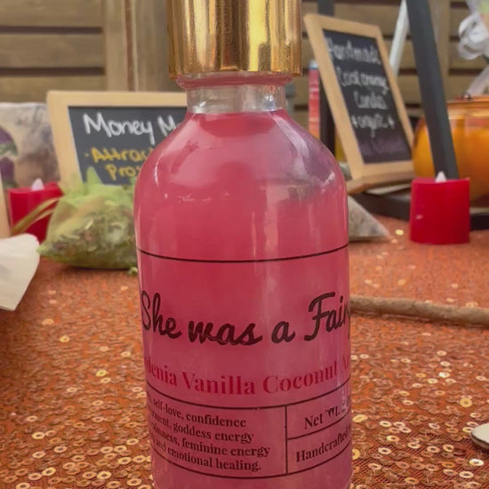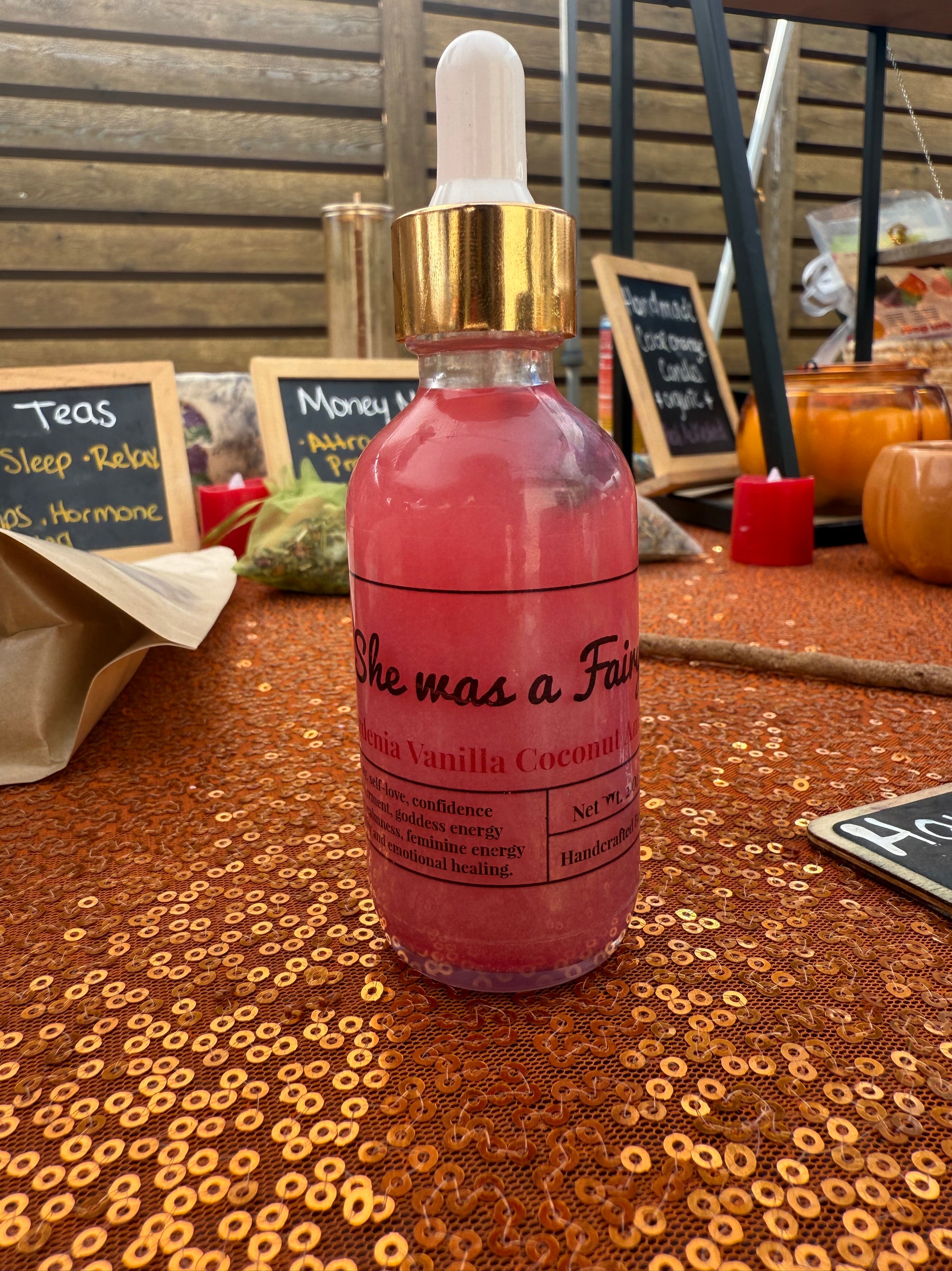 Step into your soft, magical, ethereal era with She Was a Fairy, a glittery, lightweight body oil crafted to make your skin glow like moonlit wings. Infused with coconut, rose, vanilla, and gardenia, this enchanting blend leaves a silky finish with a delicate shimmer that catches the light with every move.
